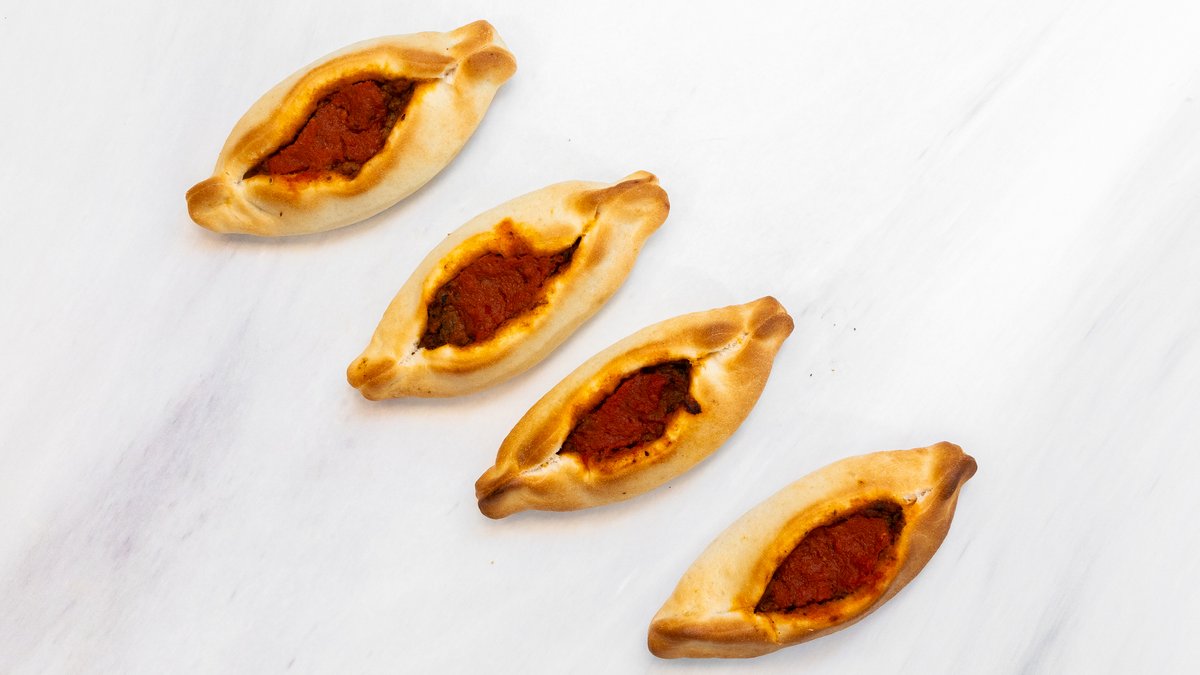 Smaka på vår autentiska libanesiska nötfärspirog, där finhackad lök, vitlök och vår egna ljuvlig tomatsås.