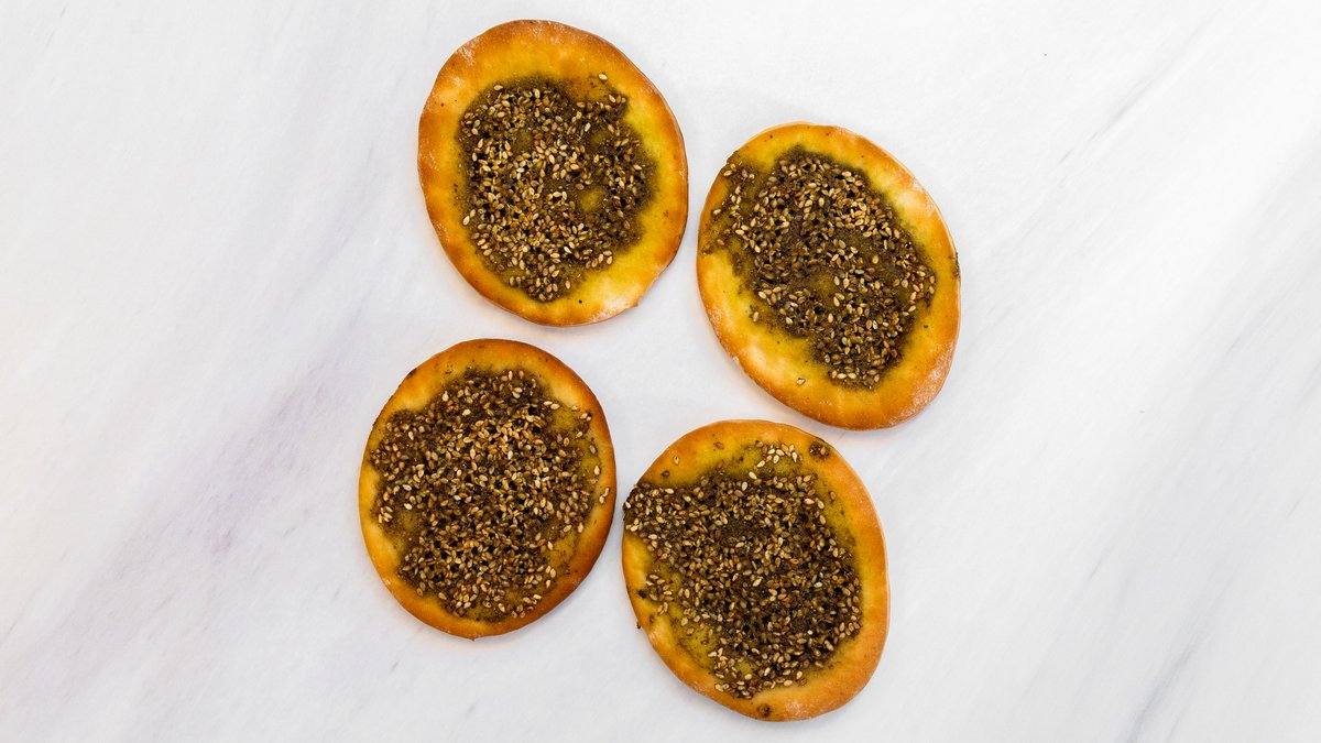 Vår Za'atar-pizza, som är kryddad med den autentiska libanesiska kryddmixen av timjan, sesamfrön och olivolja.