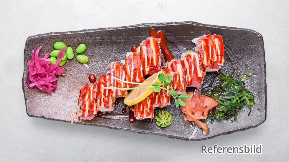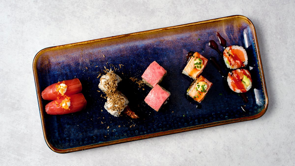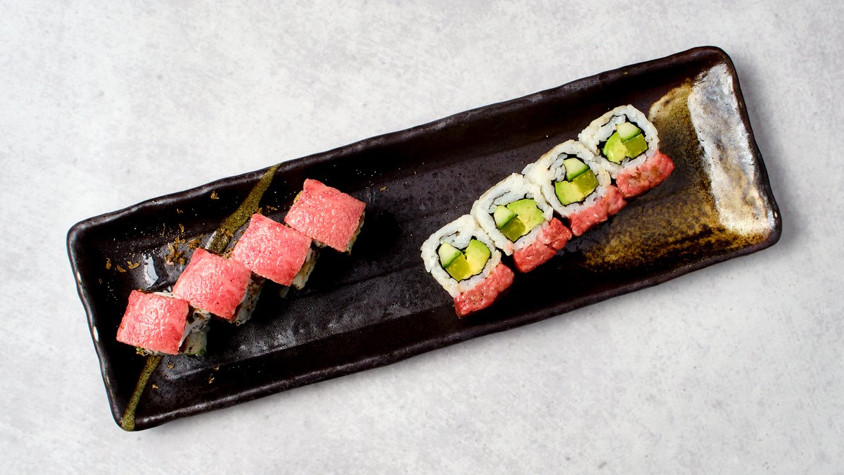 Wagyu, fresh truffle, teriyaki, avocado and cucumber.