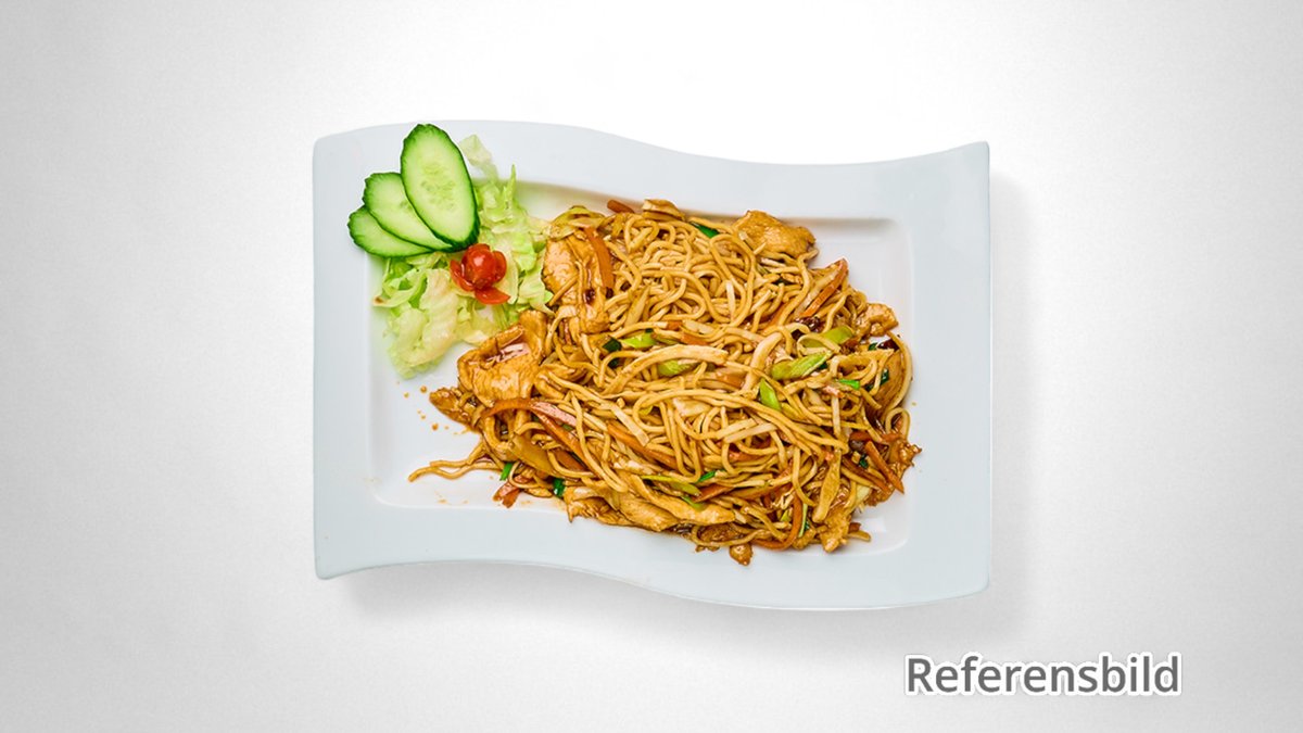 Färska äggnudlar med valfritt protein, chiliolja, sås, friterad lök, salladslök, röd chili och krispiga nudlar.