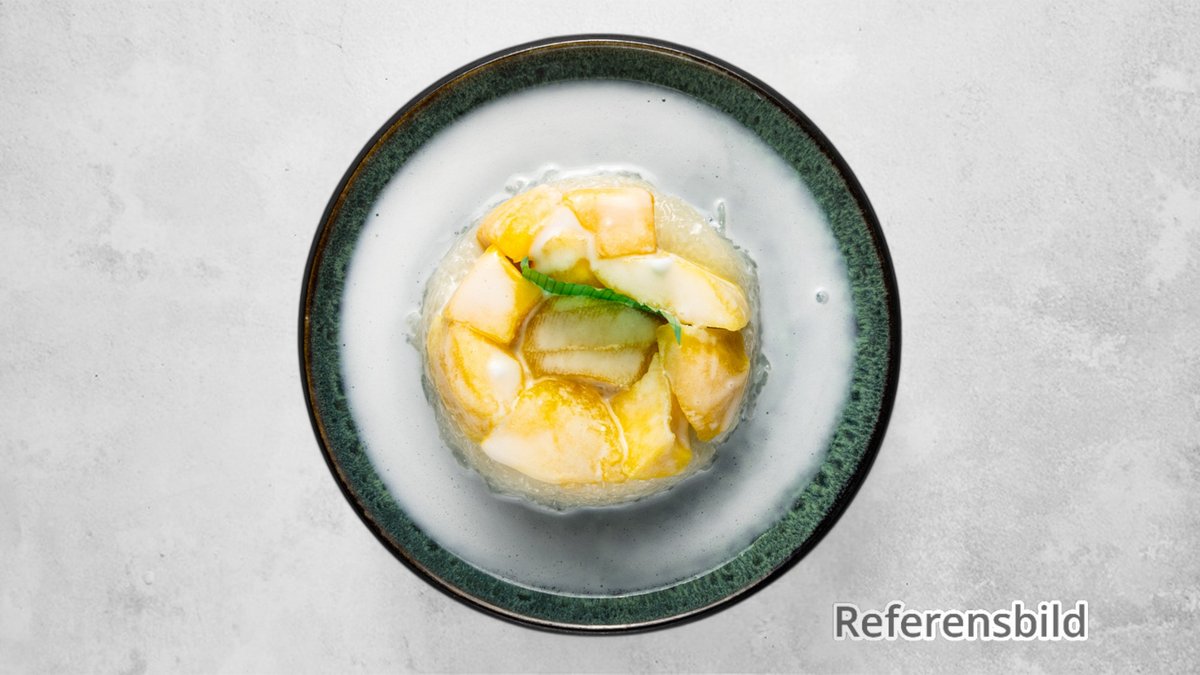 Mango, sticky rice, kokoskräm och krossade jordnötter.