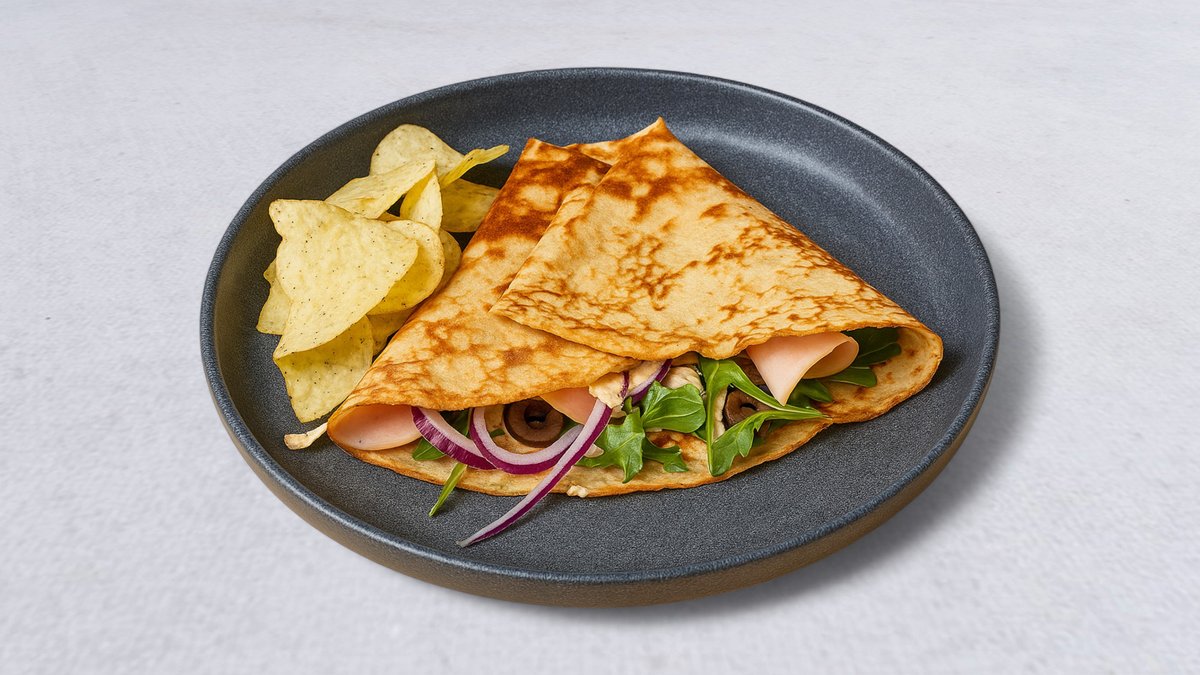 Vegansk crêpe med fikon, valnötter och fikonsirap.