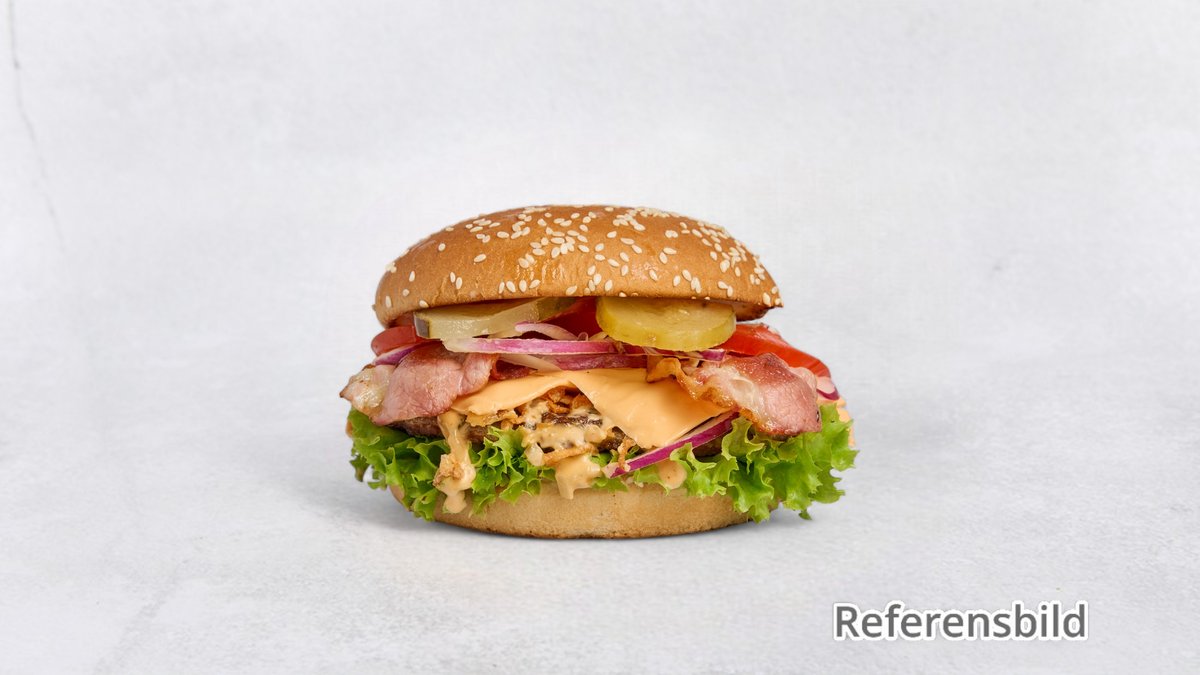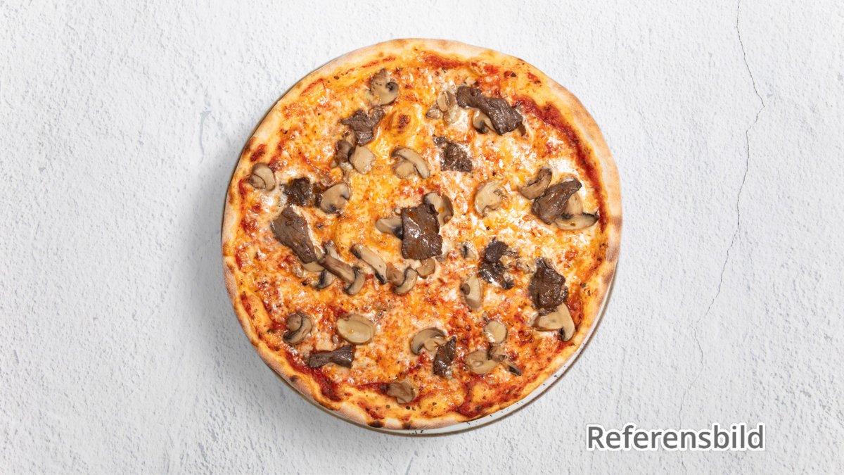 Tomatsås, ost, oxfilé, skinka, champinjoner och bearnaisesås.
