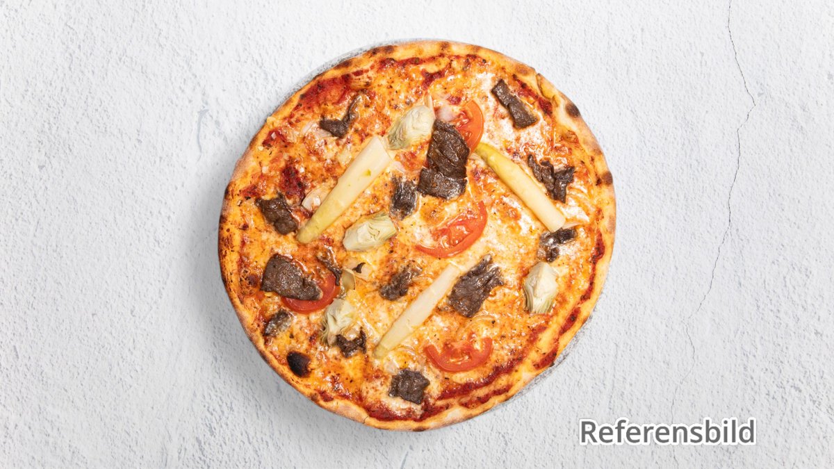 Tomatsås, ost, oxfilé, köttfärs, skinka, sparris och bearnaisesås.