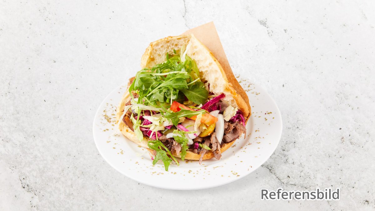 Fårost, rödlök, feferoni, oliver, paprika, soltorkade tomater, mixsallad, cocktailtomater, gurka, bröd och valfri sås.