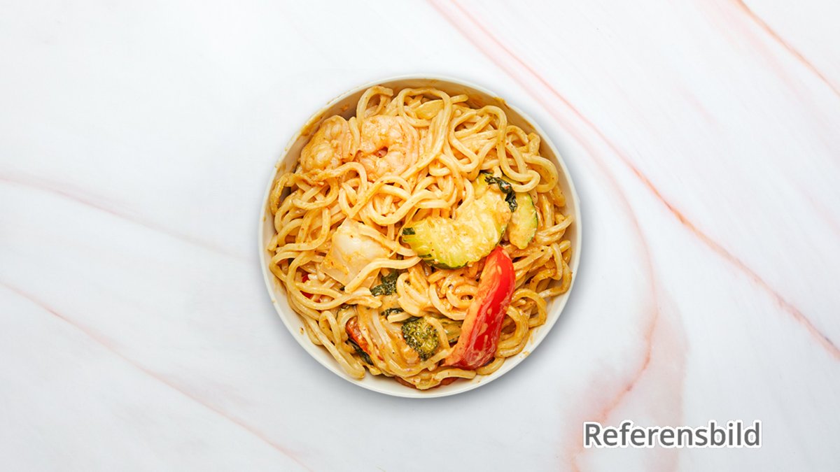 Wokade, risnudlar med ägg, vitkål, morötter, purjolök, citron och jordnötter.
