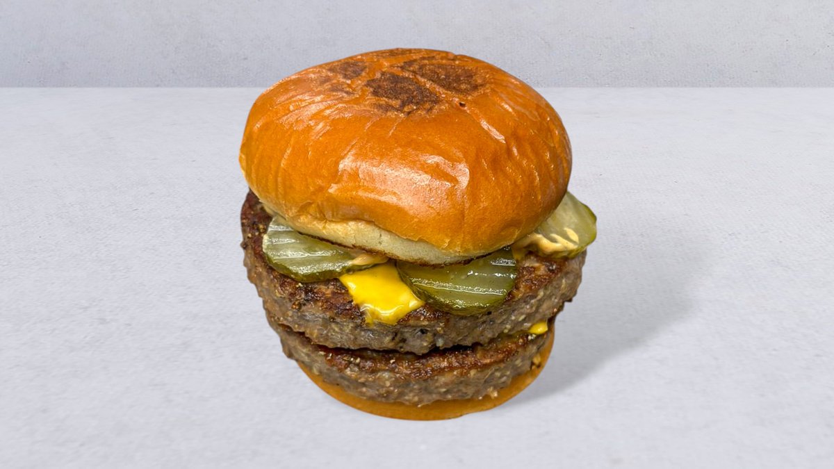 Briochebröd, dubbel black angus pattie 300 g, cheddarost, bacon, pickles och dressing.