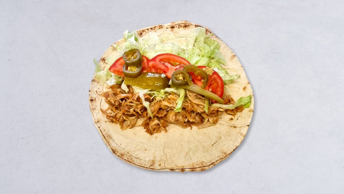 Isbergssallad, tomat, jalapeño, saltgurka, kycklingkebab och vitlökssås.