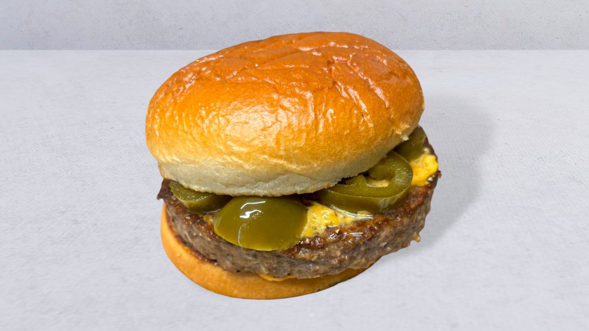 Briochebröd, dubbel smashad pattie 200 g, cheddarost, jalapeños och chilimajonnäs.