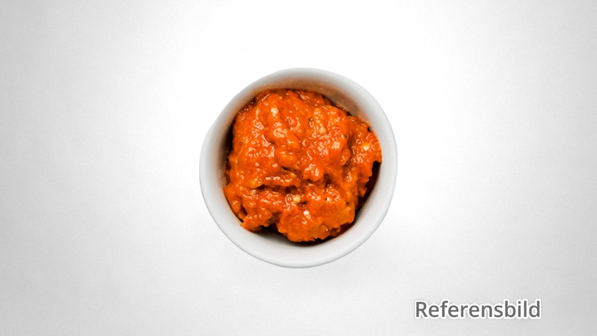 Aubergineröra, grön/röd paprika, lök, vitlök och olivolja.