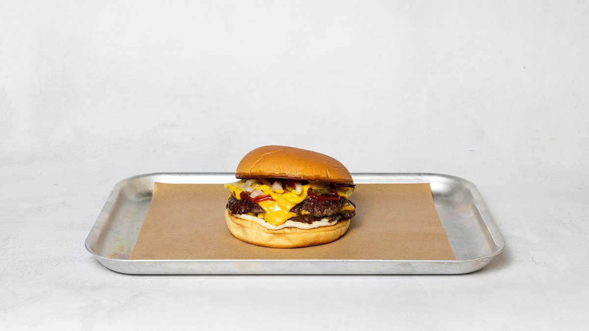 Valfri hamburgare med pommes, valfri dipp och dryck.