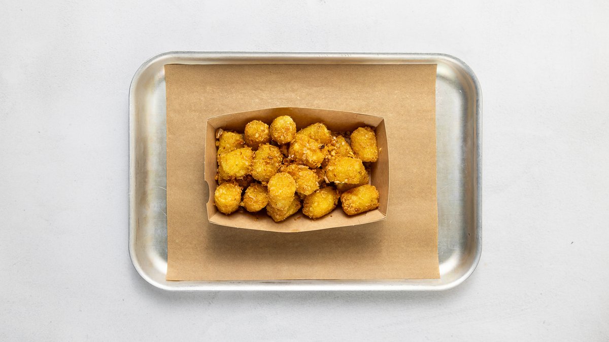 Friterad marinerad kyckling med pommes, pico de gallo och limeklyfta. Dippsås ingår.