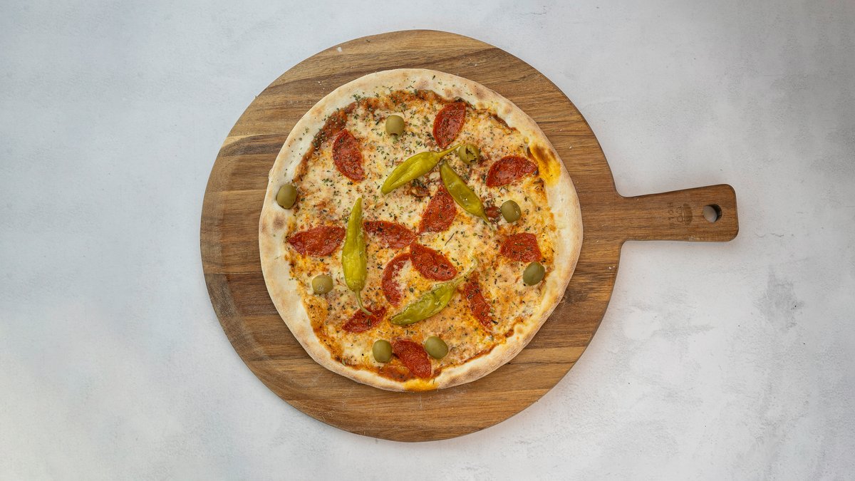 Kebab, feferoni och valfri sås. Välj tillbehör i nästa steg.