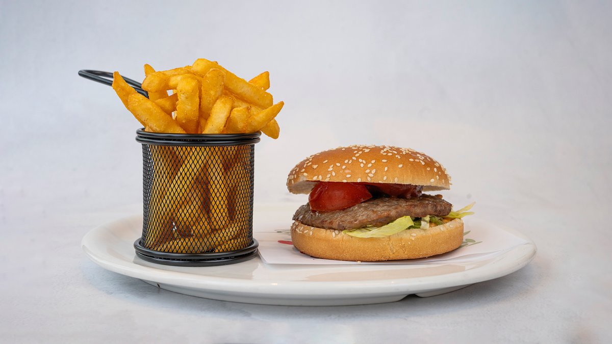 Sallad, tomat, saltgurka, dressing och ketchup ingår i alla burgare.