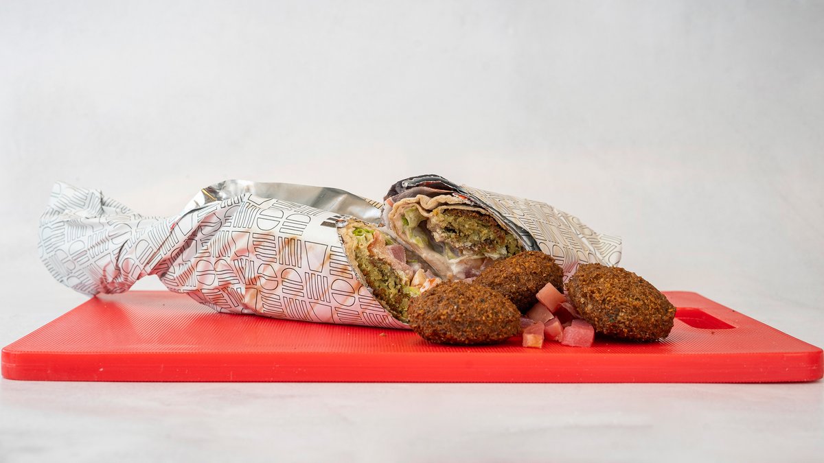 Falafel, mirova, persilja, hembakat bröd och sesamsås.