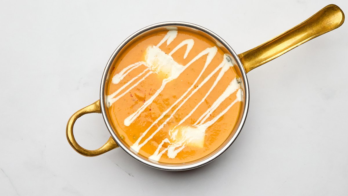 Bollar av hemgjord paneer ost. Serveras i en kryddig och krämig sås.