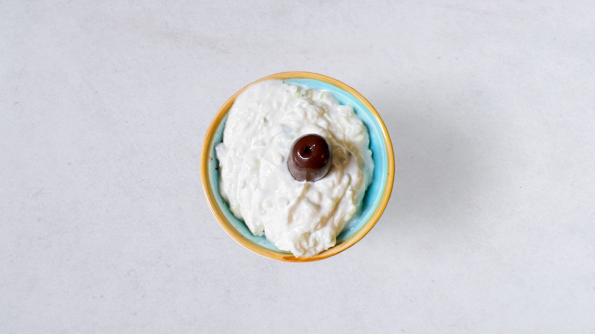 Bläckfisk i olja och vinägermarinad. Serveras med tzatziki.