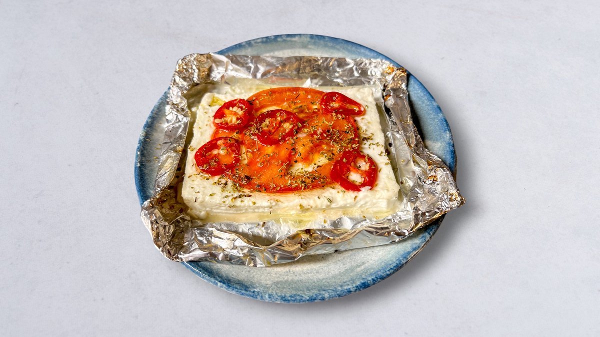 Ugnsbakad fårost med chili, tomat och goudaost.
