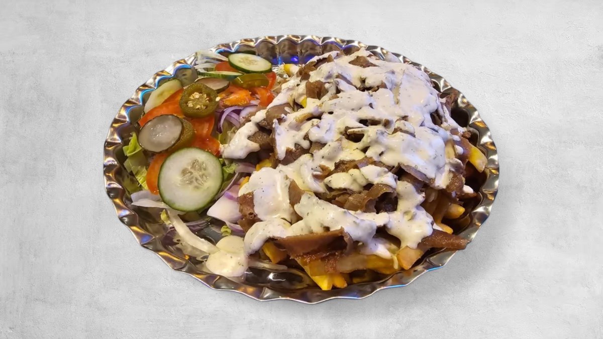 Pommes, cheddarost, jalapeneo, rödlök och valfri sås.