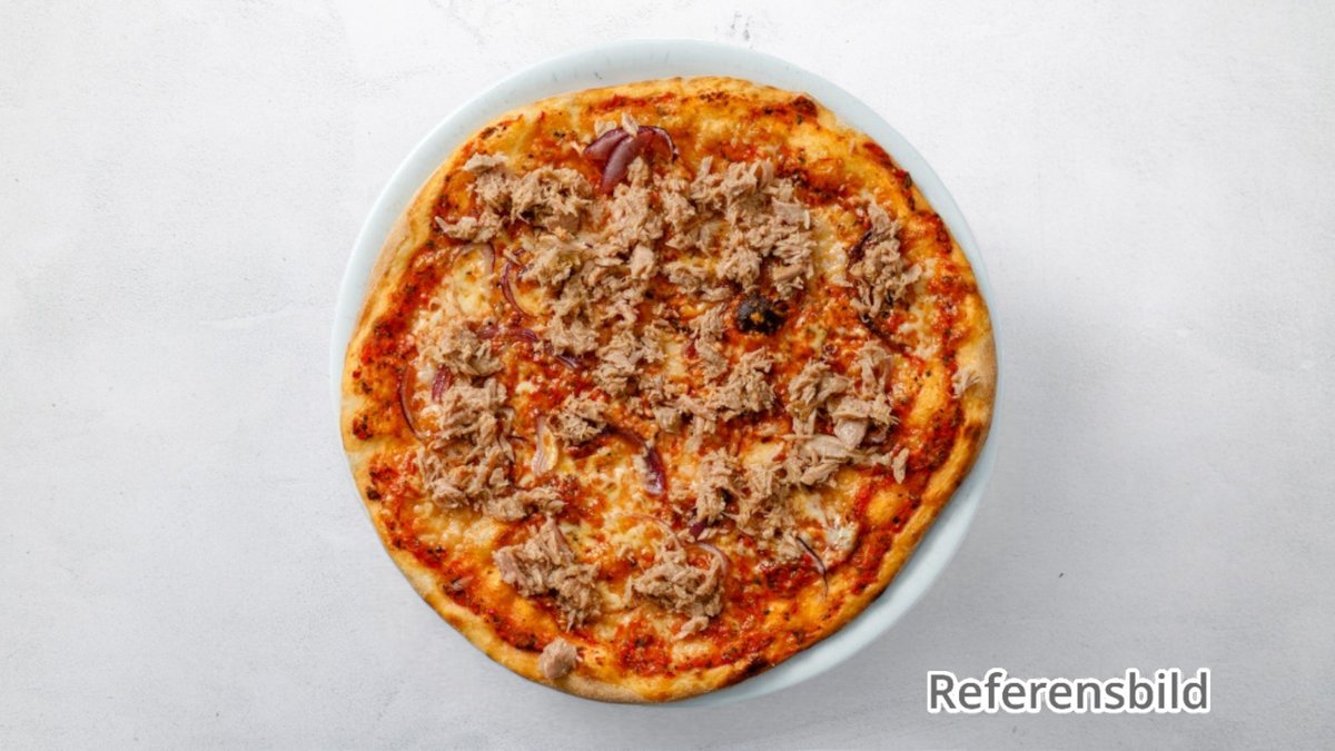 Tomatsås, oliver, lök, champinjoner, paprika och mozzarella.