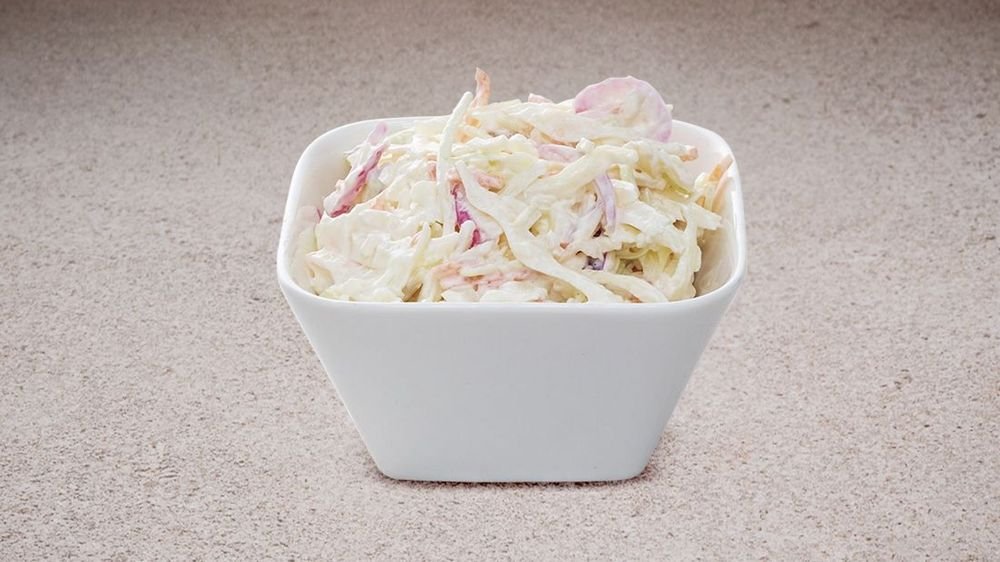 En krämig majonäsbaserad sallad med vitkål, rödlök och morötter. Görs på plats i restaurangen och är älskad av våra gäster