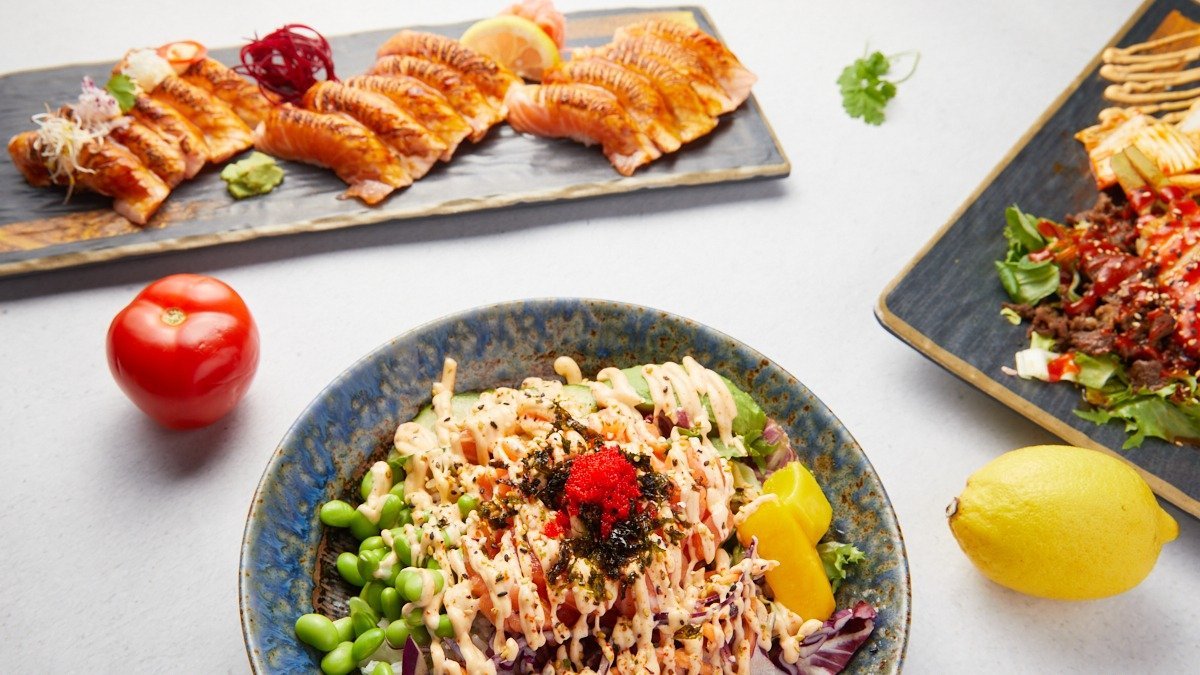 Marinerad tonfisk, avokado, gurka, krispsallad. Panko, chilisås och chilimajonnäs.