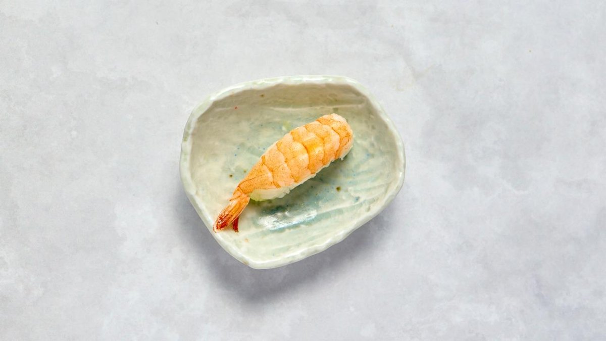 Lax, räka & färskost. Toppas med teriyakisås & gräslök.