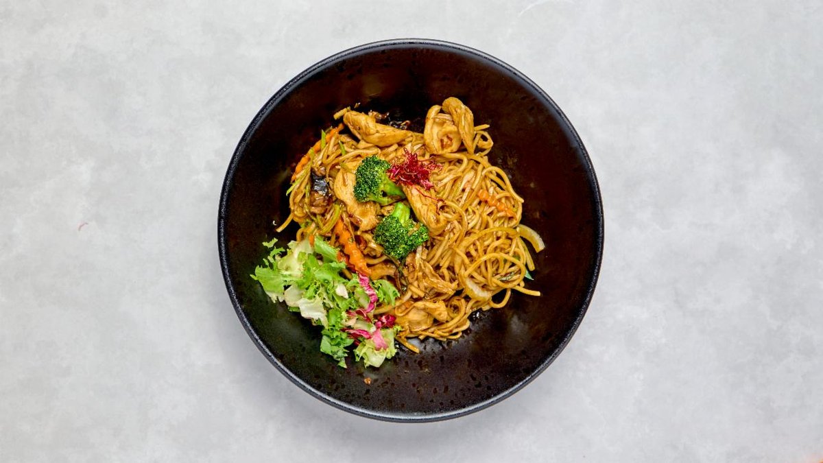 Pankofriterad kycklingfilé med jasminris, salladsmix, picklad rödlök, sojabönor, chilimayo, teriyakisås, gräslök, sesamfrön