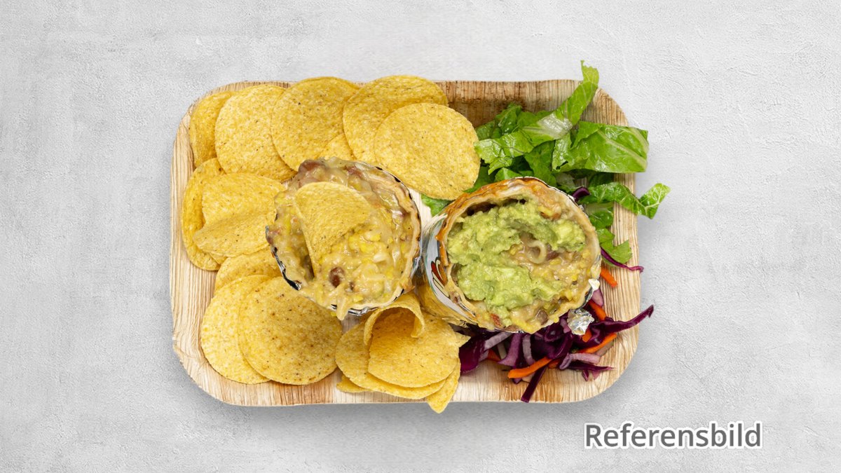 4 st buffalo wings, 3 st chicken strips, 10 chicken popcorn och pommes med 2 st såser.