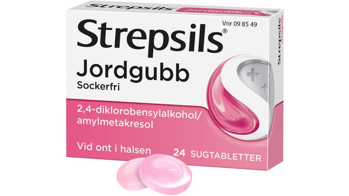 Strepsils - Sugtabletter Jordgubb 24 Stycken Sockerfri 73g