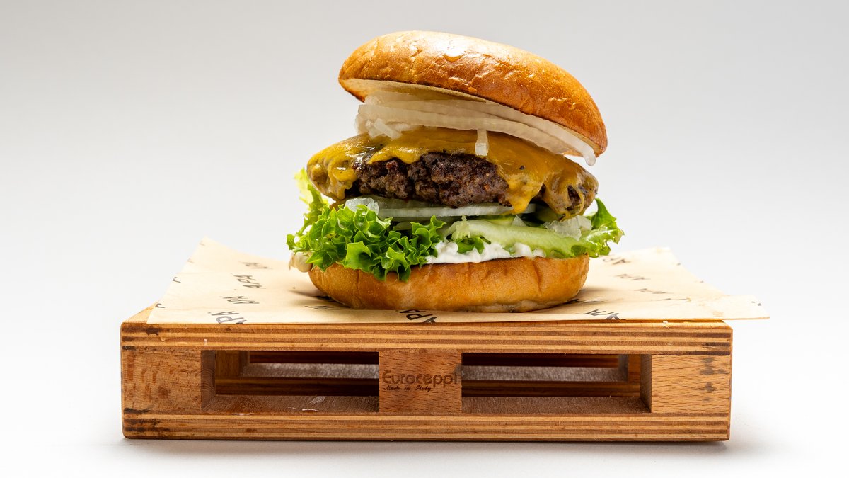 Smashat högrev, majo, senap, silverlök och cheddarost.