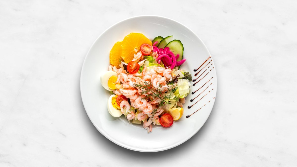 Handskalade räkor, ägg och husets dressing.