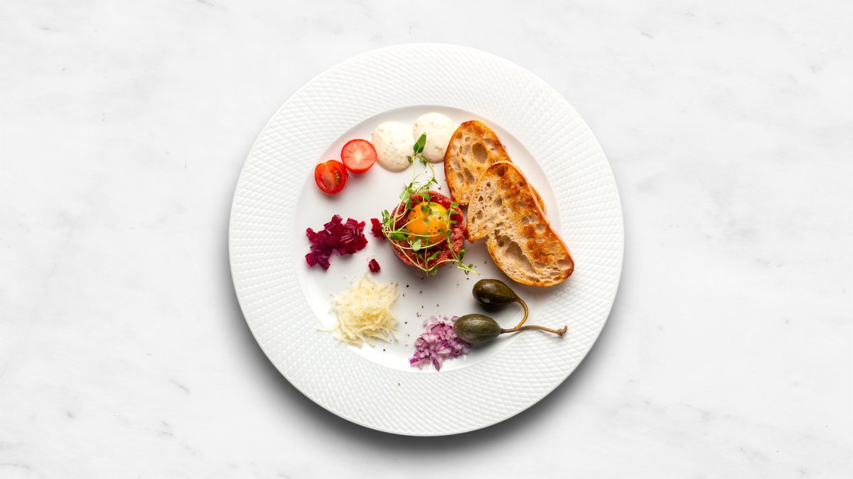 Med kapris, äggula och senap.