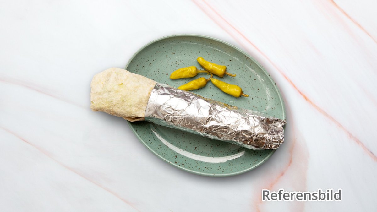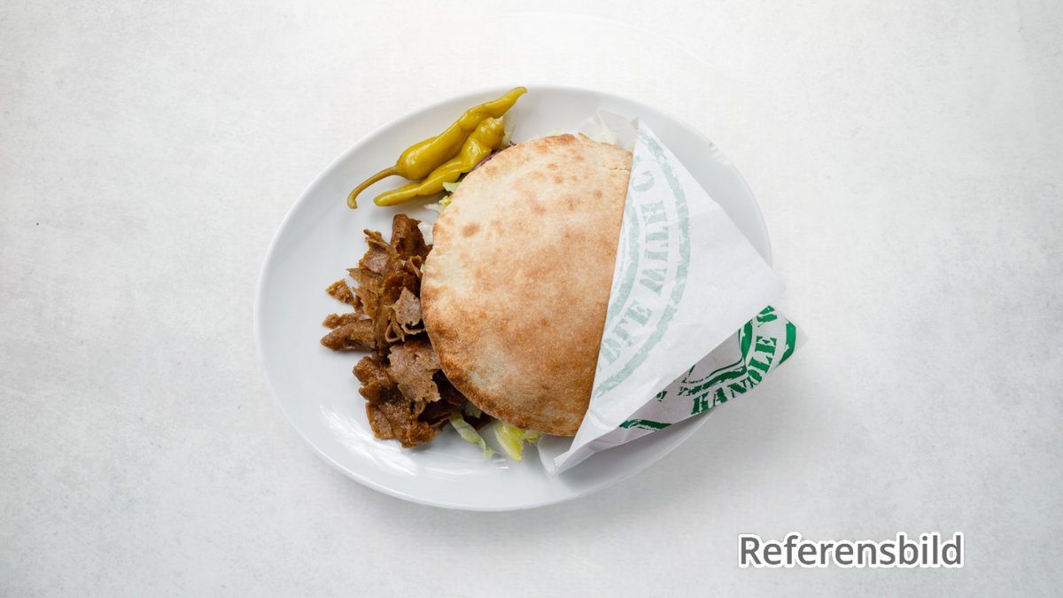 Shawarma kycklingkött, saltgurka och vitlökssås.