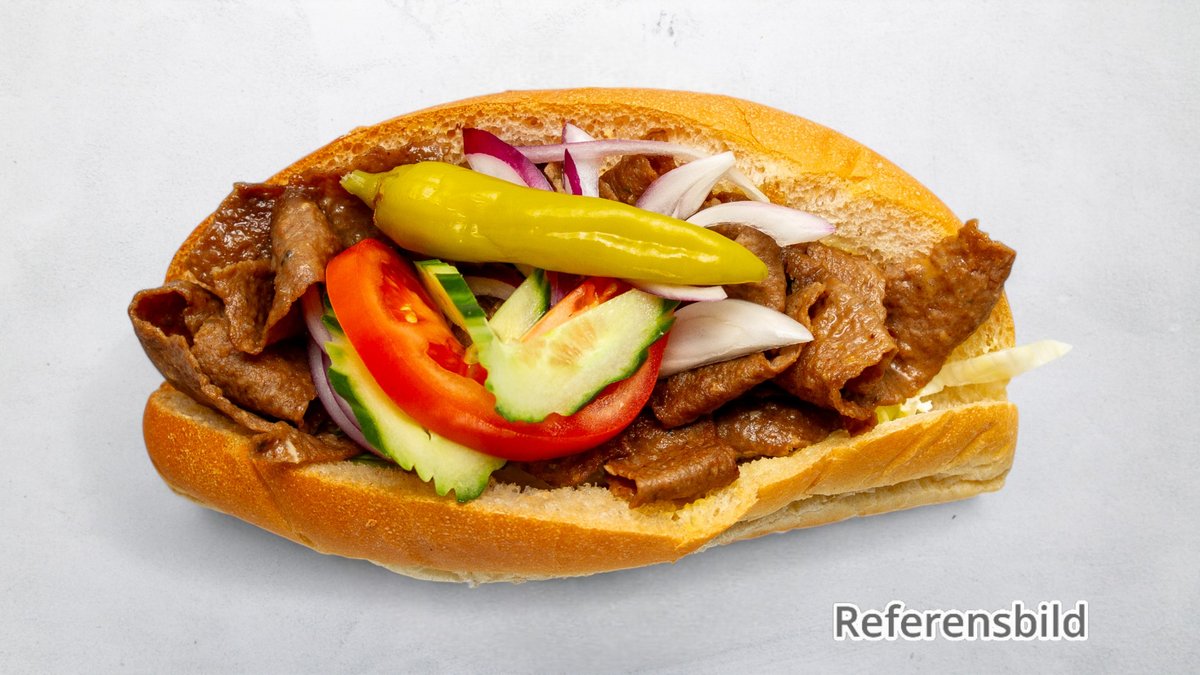 Hembakat bröd, sallad, tomat, lök, fefferoni och kebabsås.