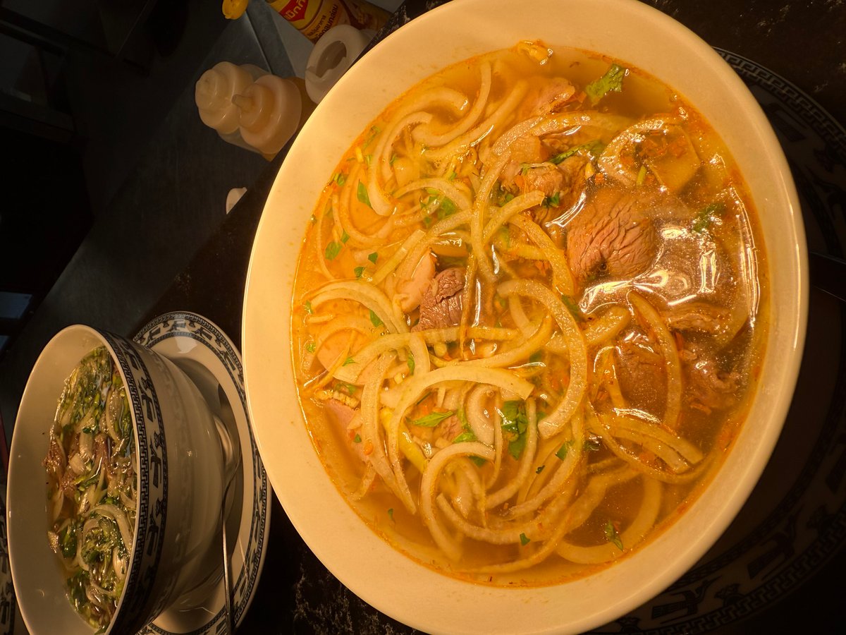 Silkeslena risnudlar i en kraftig biff- och kycklingbuljong med citrongräs. Serveras med långkokt högrev, färsk lök, salladslök, böngroddar, thaibasilika, chili och lime. En värmande och fräsch skål med klassiska vietnamesiska smaker.