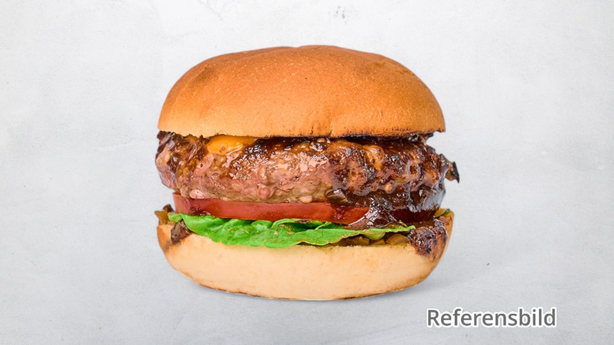 90 g. Tomat, isbergssallad, dressing, ost och pommes frites.