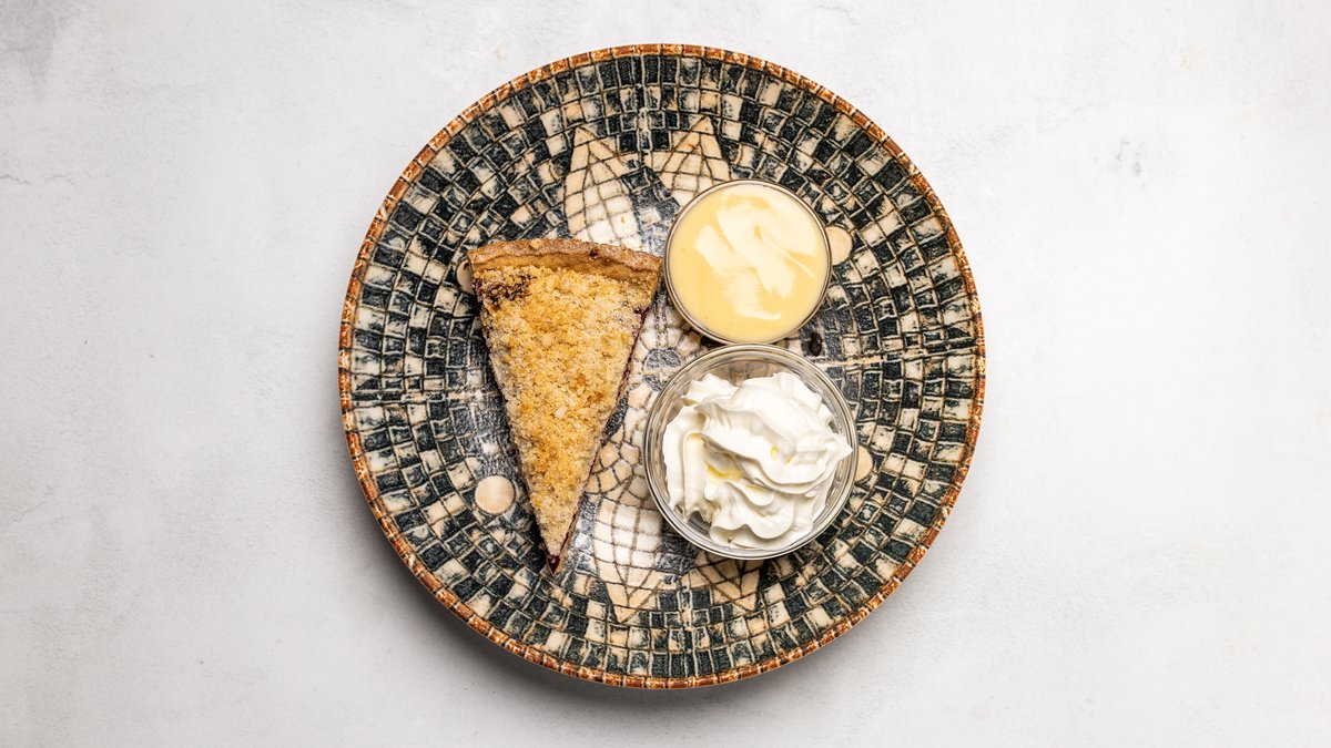 Serveras med vaniljsås.