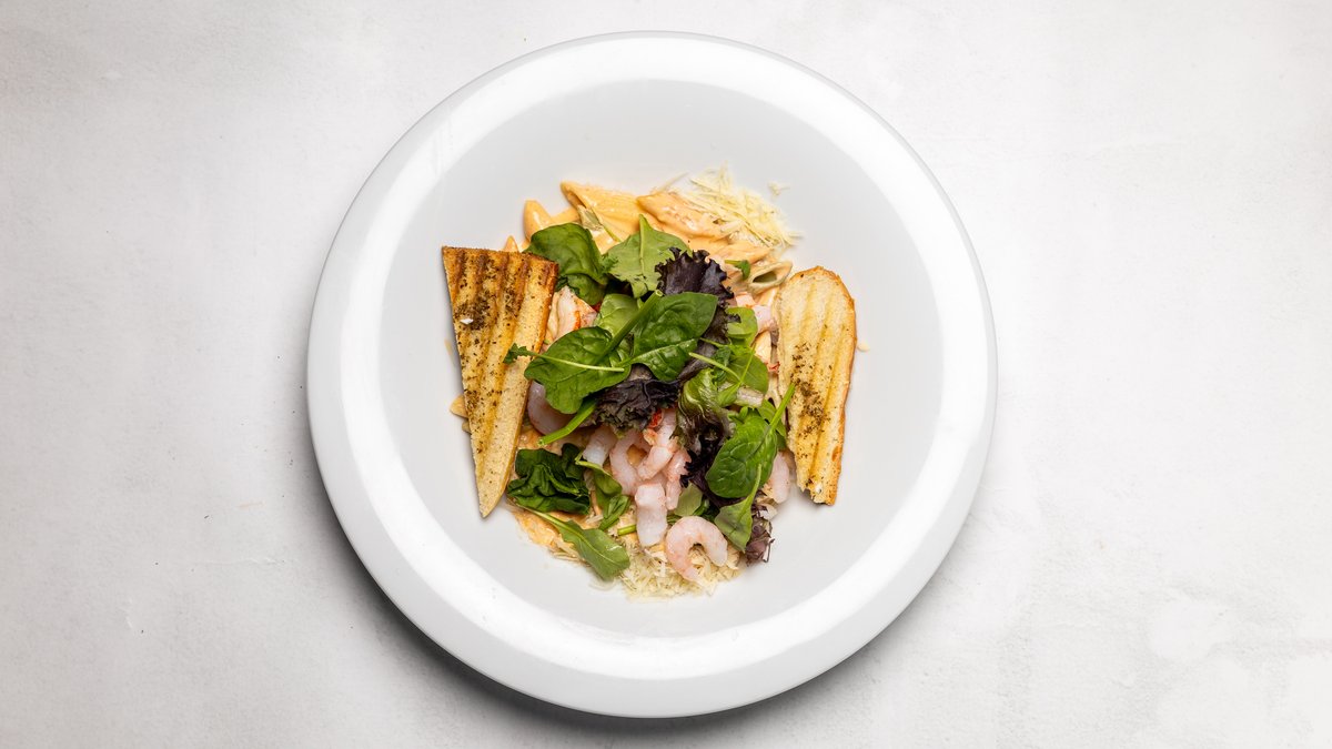 Pennepasta, räkor, kräftor och hummersås.