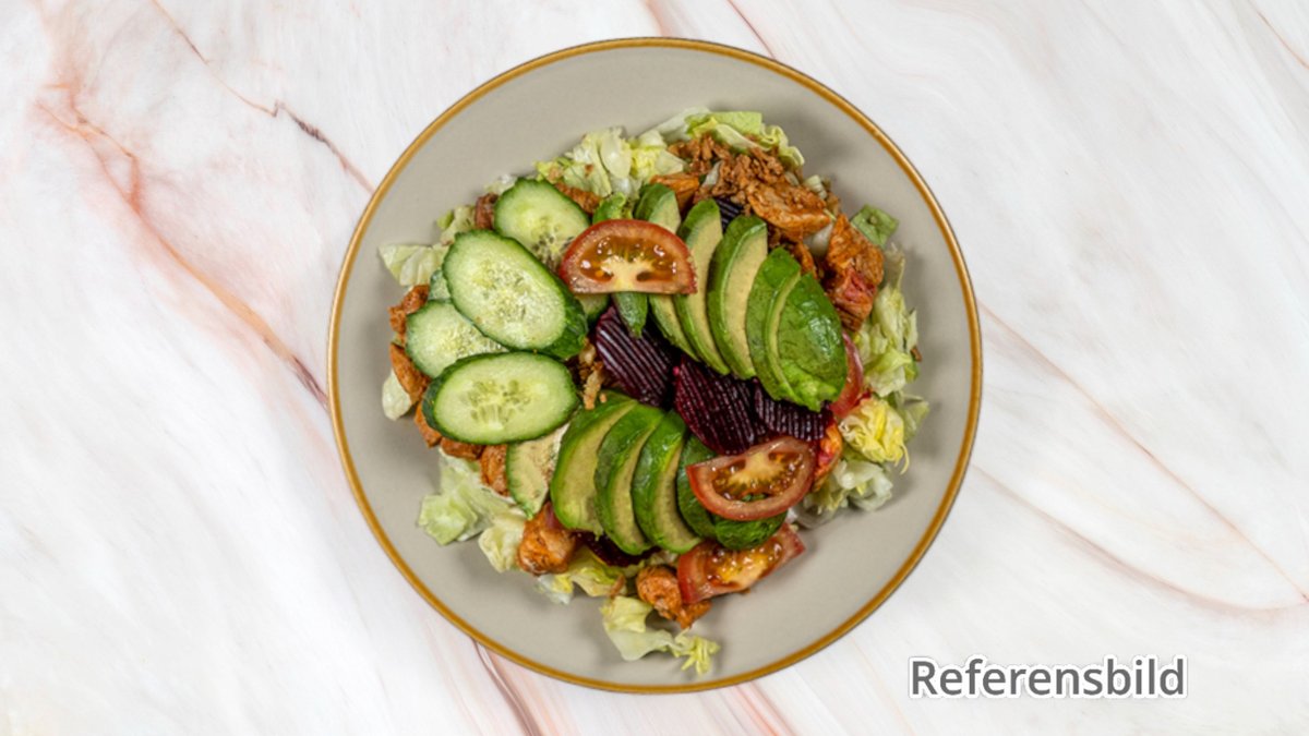 En fräsch och hälsosam sallad där mört kycklingkött möter krispiga grönsaker och en läcker dressing.