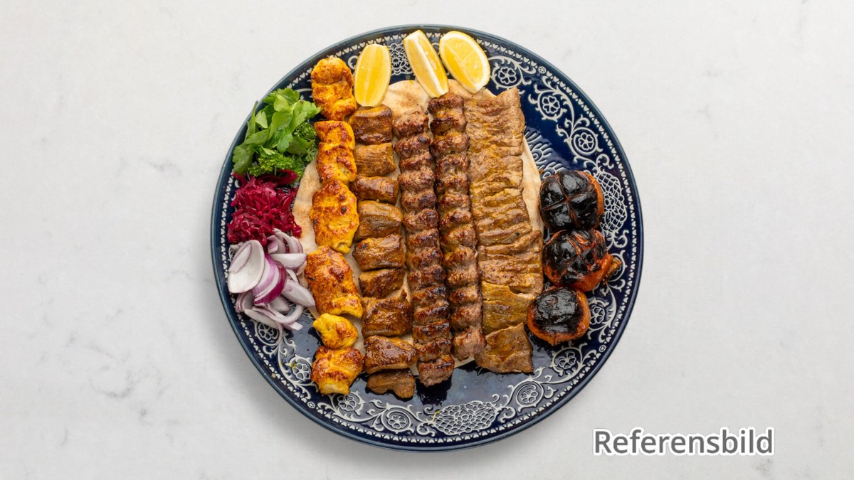 Alla huvudrätter serveras med 3 olika meza, grillad tomat, grillad paprika och nybakat bröd.