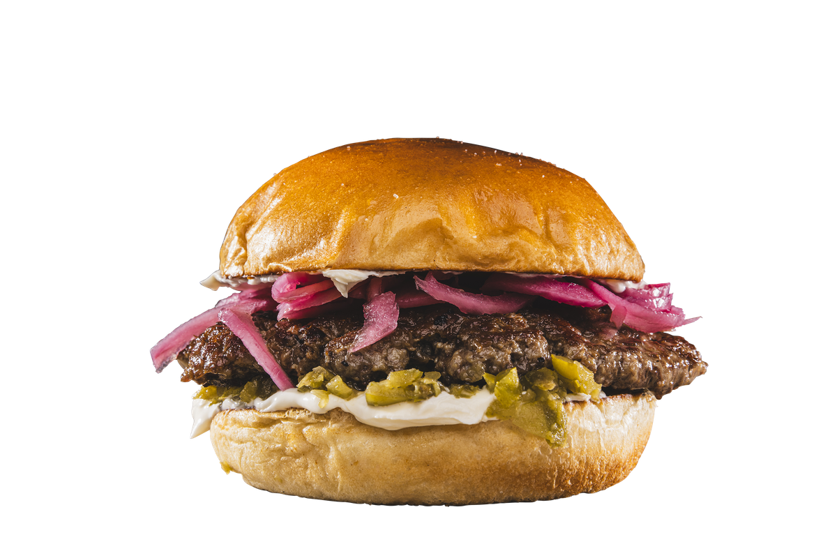 Ost, chipotlemajonnäs, karamelliserad lök, jalapenos, saltgurka