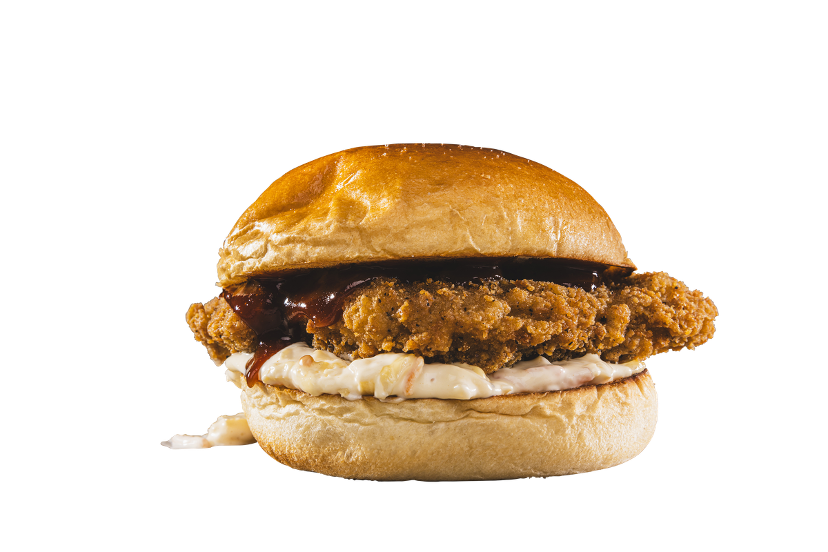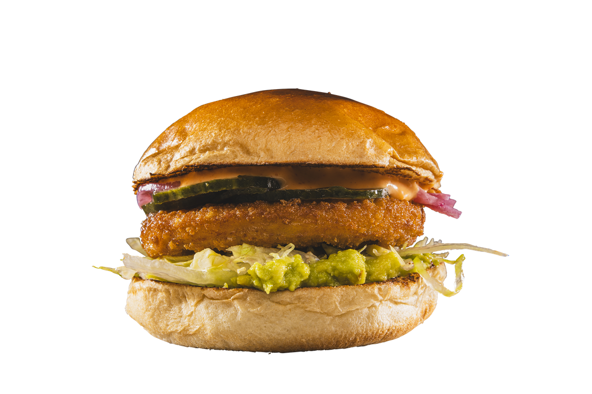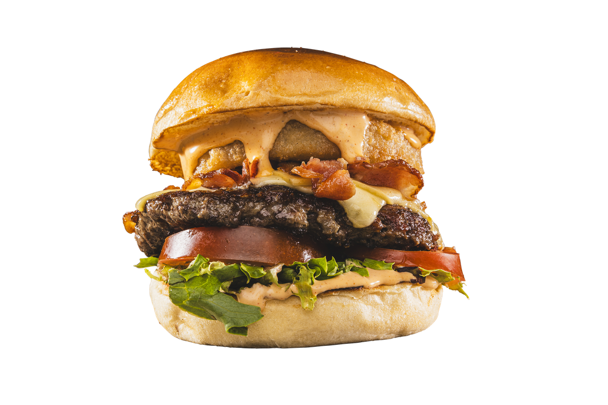 Chiliost, bacon, mixsallad, tomat, chipotle majonnäs och friterad lökring.