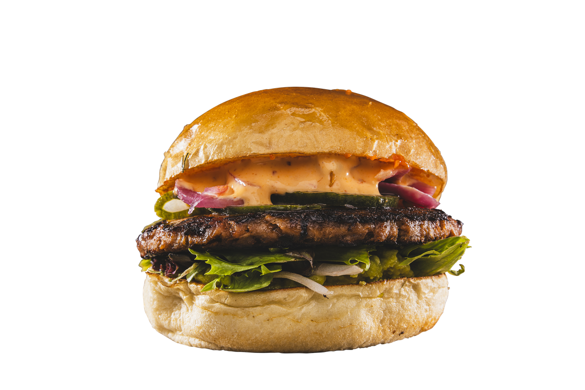 🌱 Srirachamajonnäs (vegansk), avokado, mixsallad, picklad rödlök och dillpicklad gurka.