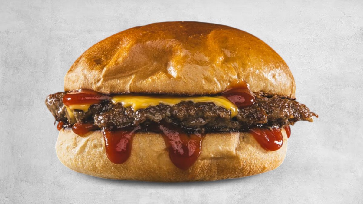 Burgare med ost, lök, sallad, tomat och dressing. Pommes, dipp och dryck ingår.
