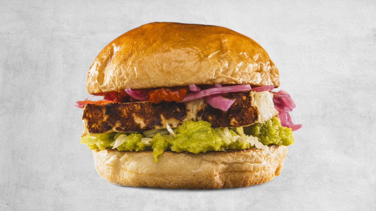 Chiliost, bacon, mixsallad, tomat, chipotle majonnäs och friterad lökring.