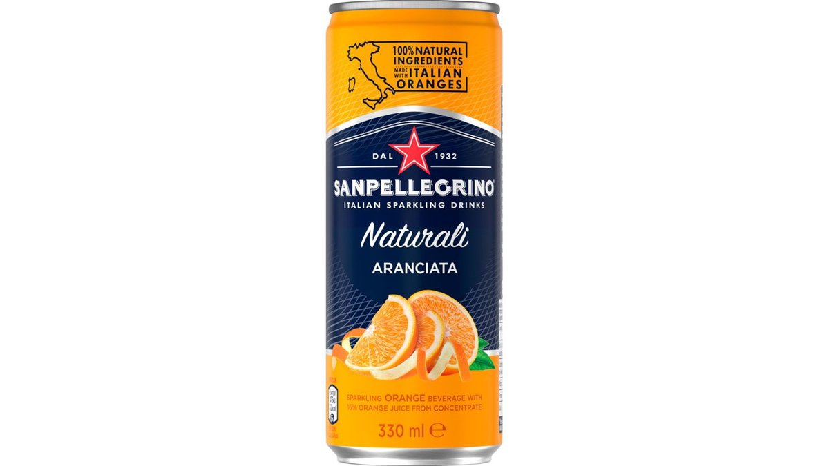 San Pellegrino Aranciata, en kolsyrad dryck med noga utvalda solmogna italienska apelsiner. Smaken är fyllig och inte alltför söt med balanserad ton av beska.