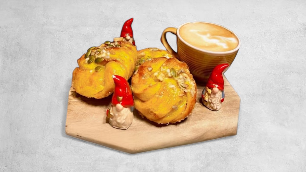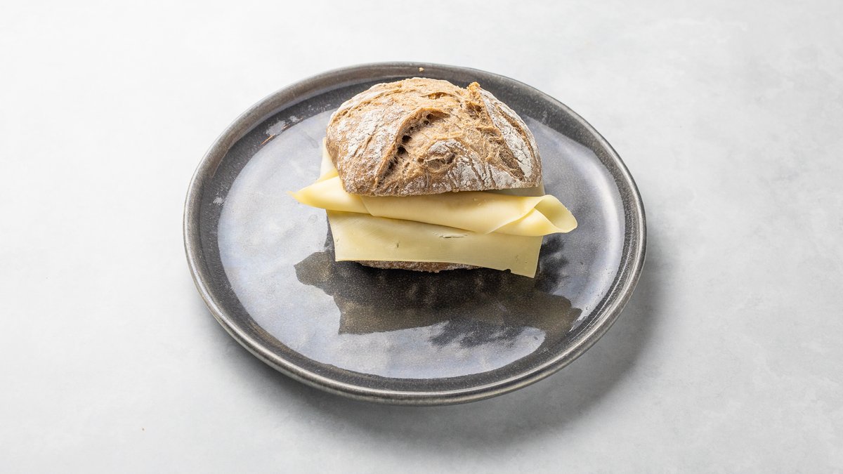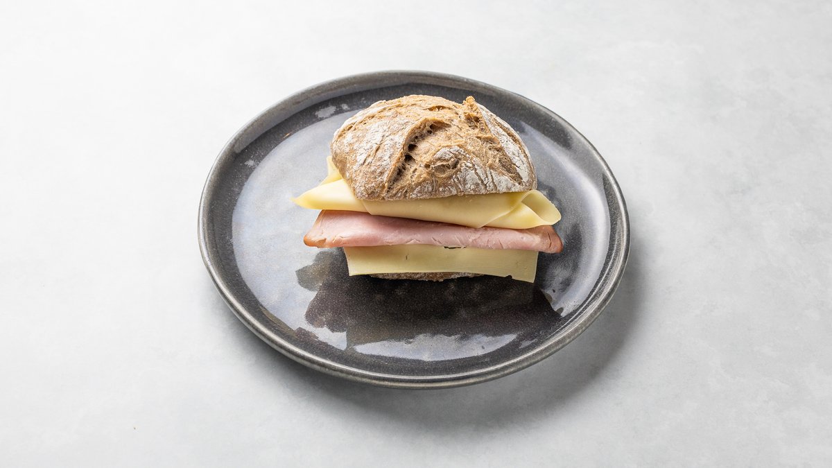 Välj mellan ostfralla och skinkfralla, serveras med kaffe.
