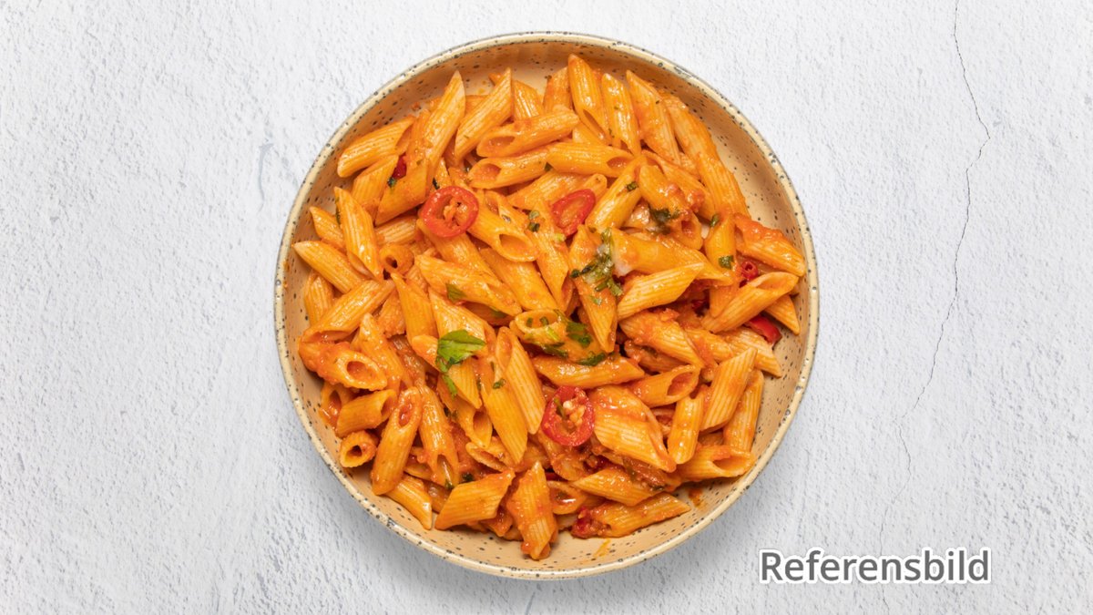 En rätt med hetta med tomatsås, lök, vitlök, chili, olivolja, parmesan och persilja.