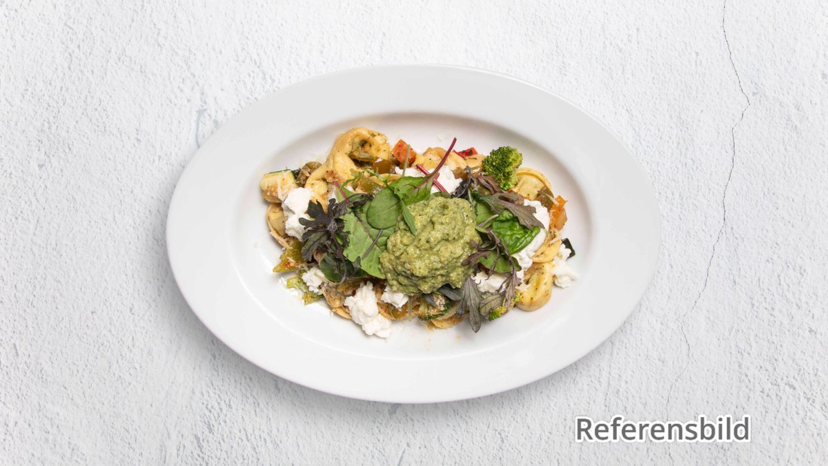 Tortelloni med ricotta, spenat, körsbärstomat, smör.